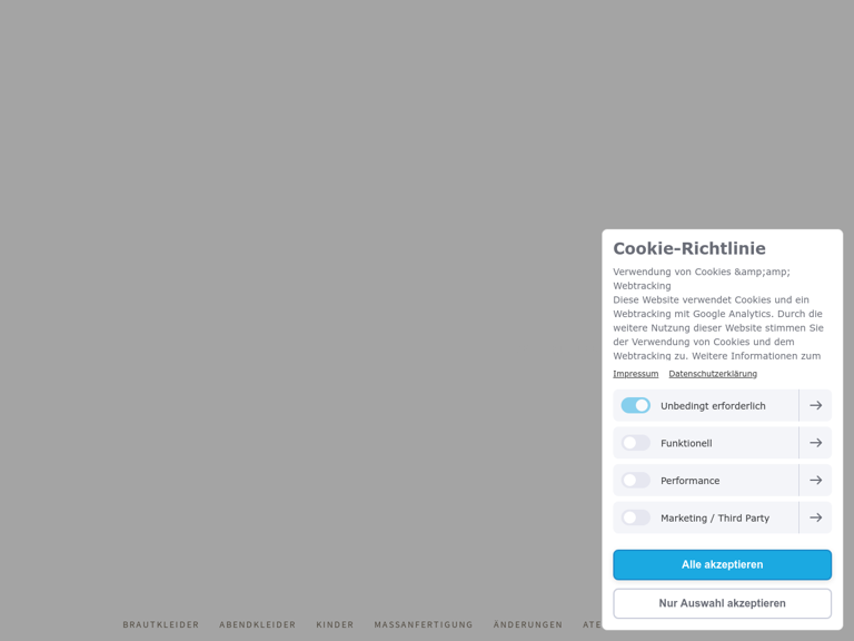Abendkleider, Brautkleider, Cocktailkleider, Kinderkleider, Accessoires, Schuhe, individ. Maßanfertigung und aktuelle Kollektion