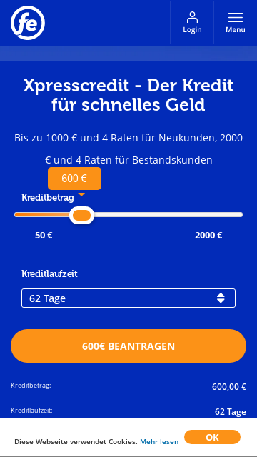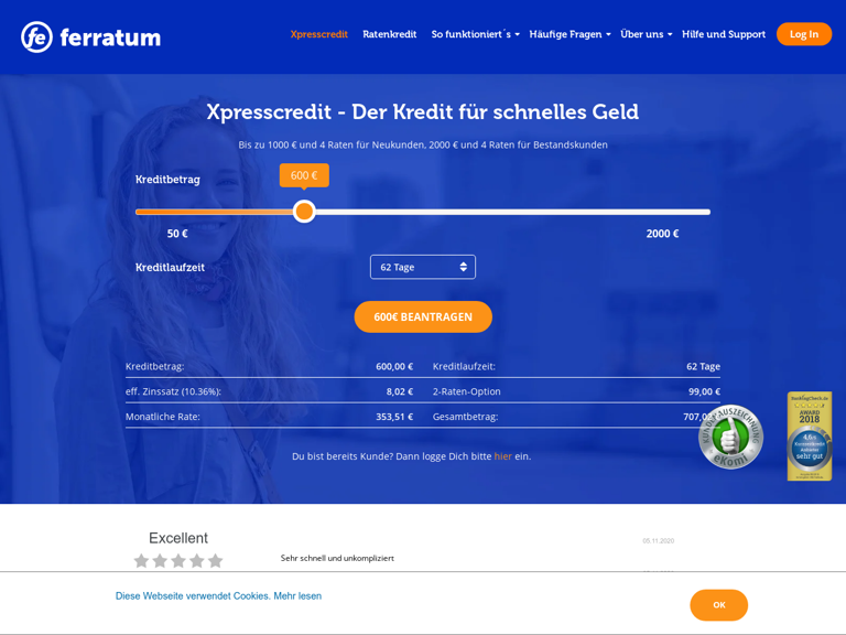 Xpresscredit ist ein Kreditvermittlungsservice der Ferratum Germany GmbH. Kunden können in 5 min einen Kleinkredit beantragen, 50 bis 600. . .