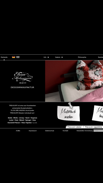 ELISA MELANZANI vertreibt die exklusive Musterkollektion TREASURY, gedruckt auf luxuriösen Materialien wie Leinen, Seide und hochwertigen Vliestapeten. TREASURY besticht durch ungewöhnliches. . .