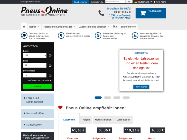 Reifen Pneus Online ist der Internet-Reifenhändler Europas für PKW-, Motorrad-, Offroad-Reifen und Schneeketten. Alle Top-Reifenmarken. . .