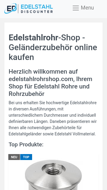Die Edelstahldiscounter GbR vertreibt Geländerzubehör aus V2A. Dazu gehören Edelstahlgeländer, Geländerpfosten und Handläufe. Das komplette. . .
