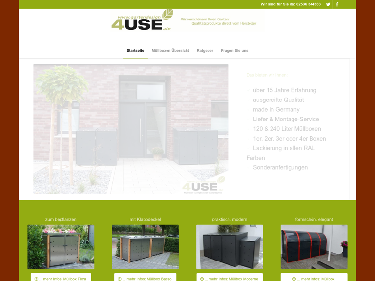 4USE ist Produzent und Lieferant von Mülltonnenboxen und Gartenprodukten