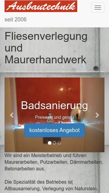 Der Gegenstand der Firma ist Trockenbau, Badsanierung, Isolierungen, Dämmung, Versiegelung, Spachteltechniken und Fliesenarbeiten. Angebot!