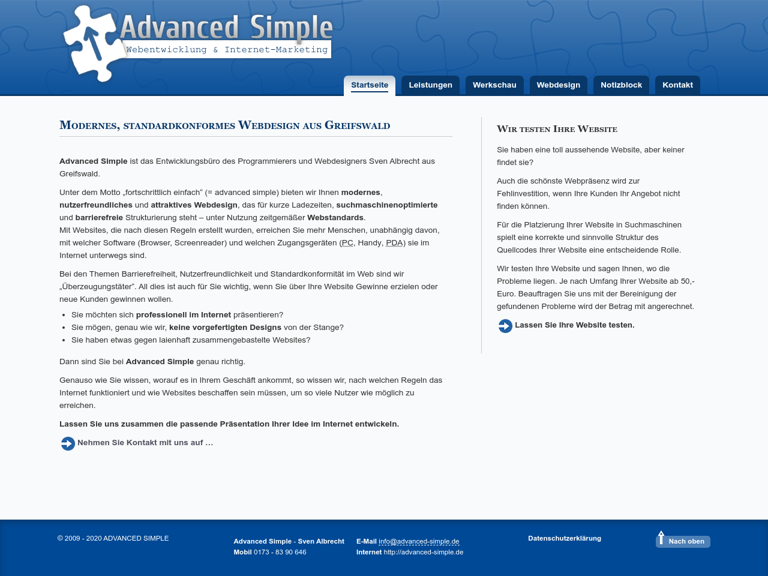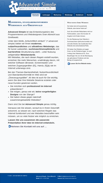 Advanced Simple - Webdesign unter besonderer Berücksichtigung von Suchmaschinenoptimierung, Benutzerfreundlichkeit und Barrierefreiheit.