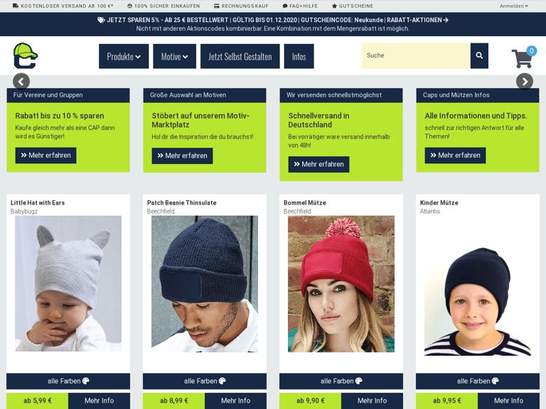 Ein Onlineshop zum gestalten von Caps, Mützen und Beanies für die ganz Familie. Druck und Stick möglich.