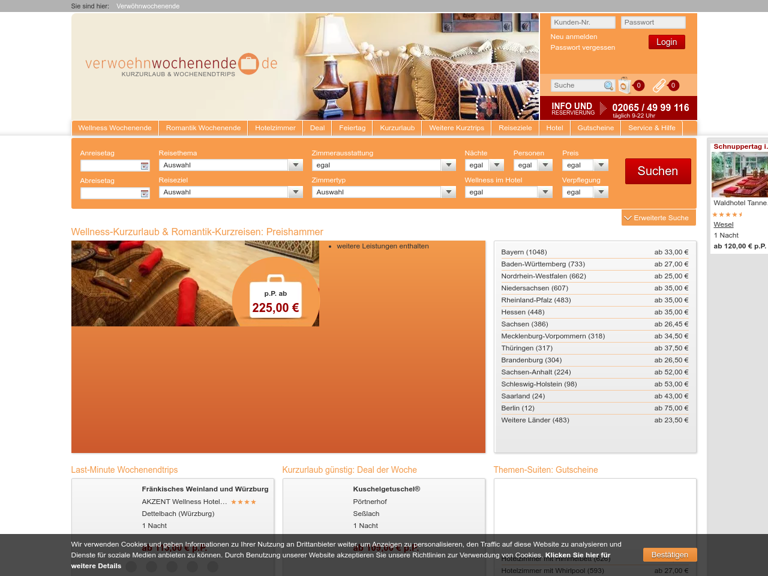 Verwoehnwochenende. de ist eines der führenden deutschsprachigen Reiseportale für einen Kurzurlaub in Deutschland.