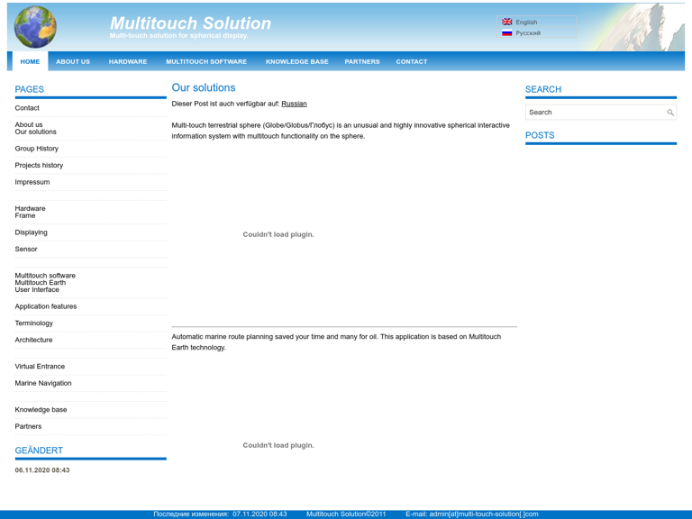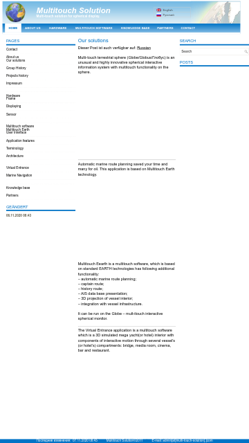 Multi-touch solution for spherical display. Globus (Erdkugel) is the multi-touch domed (sphere) screen.