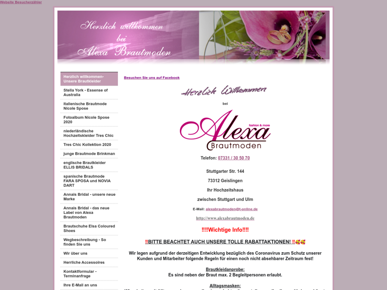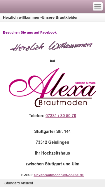 Liebe Braut, Herzlich willkommen bei Alexa Brautmoden. Wir freuen uns auf Ihren Besuch! Tel. 07331 - 30 50 70